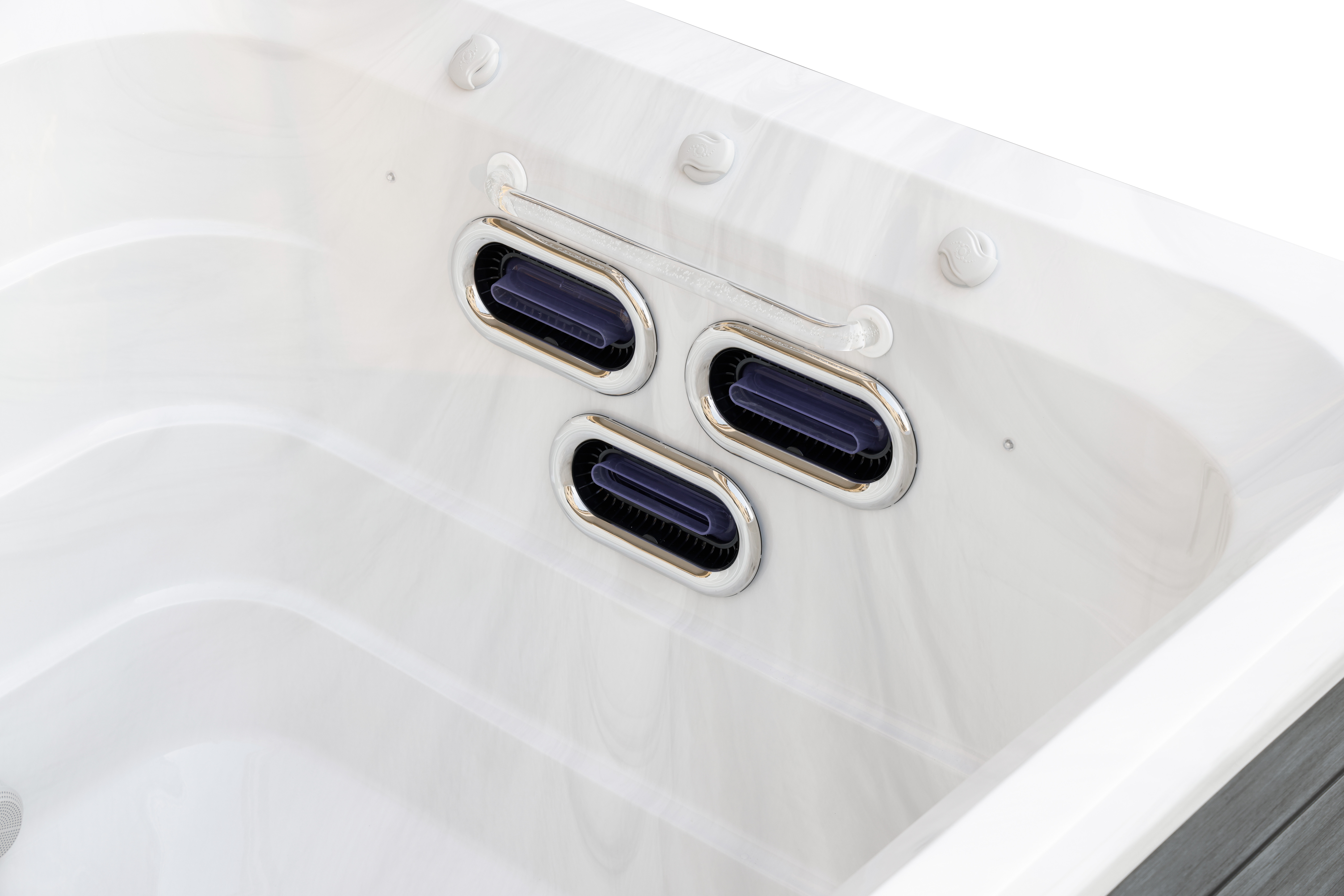 Хорошо продуманная система освещения превращает вечерний отдых в эстетическое наслаждение. Многоцветная подводная подсветка Northern Lights, дополненная изящной подсветкой ватерлинии, создает сложную игру света на воде, способствующую глубокой релаксации и визуальной гармонии.